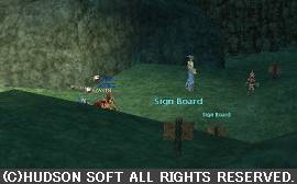 あたりを見回すと、サインボードがアルターを出た先から村の方へ意味ありげに並んでいました。 ずっとたどって行ってみると、アルビーズの森のほうへ続いています。 誘導用の標識なのかな? やることがないので、とりあえず、現代からWarAgeへの移動が完了するのを待ちます。 20分ほどの後・・・。